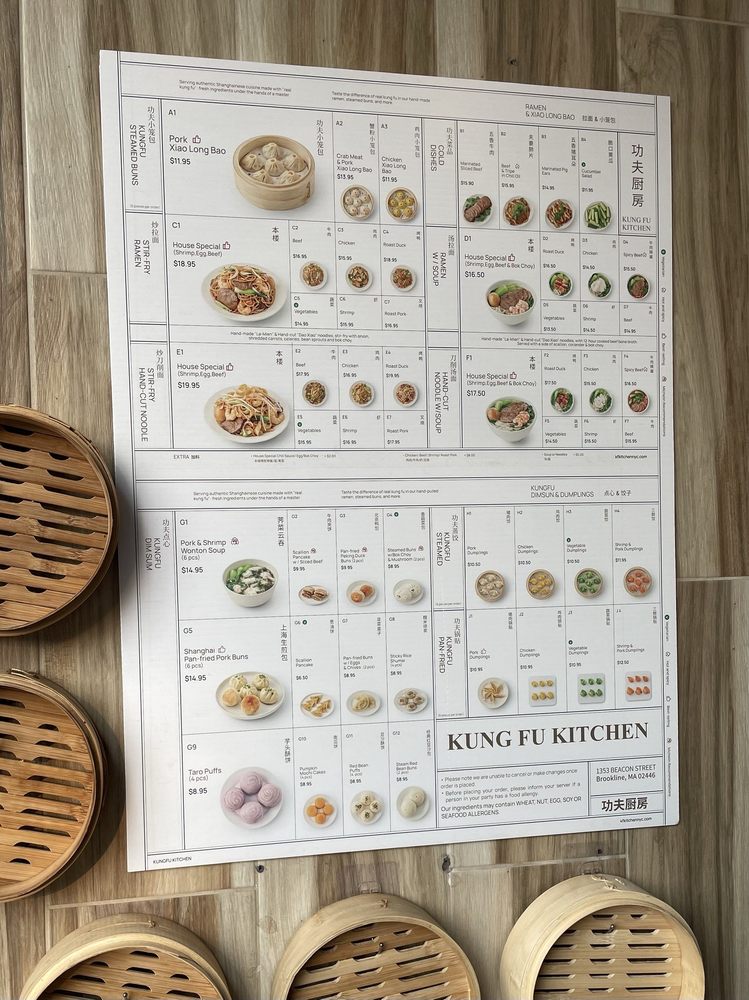 Kung Fu Kitchen is a Chinese restaurant in Brookline, MA, specializing in delicious ramen dishes. This establishment offers a wide range of amenities, including delivery, takeout, and a full bar. The menu features mouth-watering options like Beef & Tripe in Chili Oil, Chicken Xiao Long Bao, and PanFried Buns with Eggs & Chives. With Michelin-recommended dishes like Pork & Shrimp Wonton Soup and Scallion Pancake with Sliced Beef, Kung Fu Kitchen promises a culinary experience like no other. The restaurant also provides a variety of seating options, from outdoor seating to private dining. Whether you're looking for a quick meal or a leisurely dining experience, Kung Fu Kitchen has something for everyone. Don't miss out on the chance to savor authentic Chinese flavors in a cozy and welcoming atmosphere.